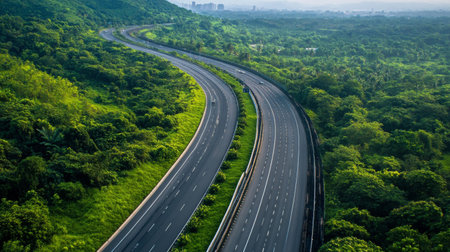 Aerial view of Expressway, Road traffic an important infrastructure of the capital. Generative Ai