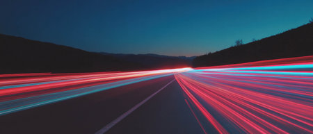 Captivating Night Speed Light Trails on a Highway Under Starry Sky, Symbolizing Future Adventures