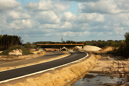 Support activities for the construction of roads and highways. Road under construction.