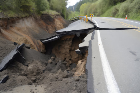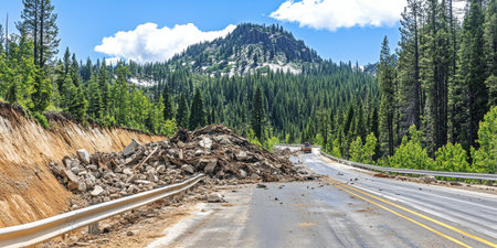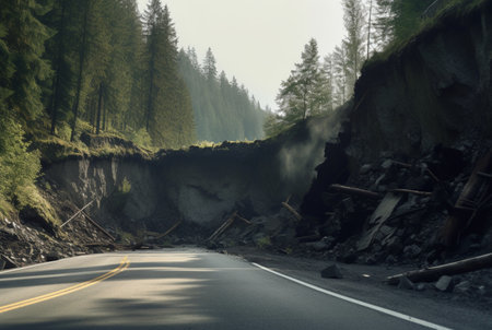 landslide blocks road, forcing drivers to find alternate route, created with generative ai