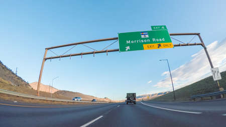 Driving on statehighway 470 at sunrise.