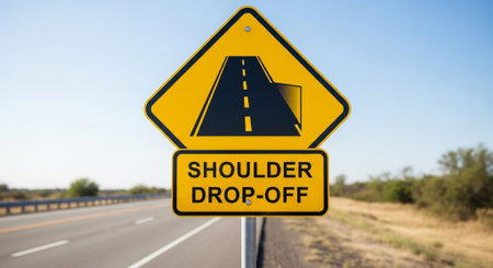 Roadside road sign on a rural road with blue sky in the background