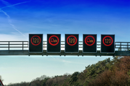 Signage, signage bridge over the motorway A 2 direction Dortmund in Germany.