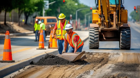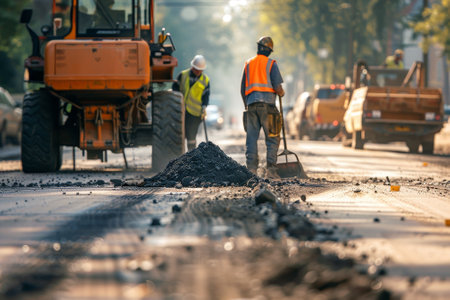 Paving Progress, Revitalizing Roads - The Urban Planning Repair Team in Action. Generative AI