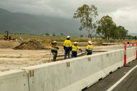 Mackay to Townsville Bruce Highway, Queensland, Australia - November 2021: Construction workers building a new highway stop for a chat