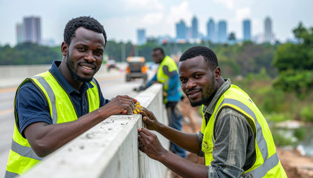 portrait of afro-american construction workers working on construction site