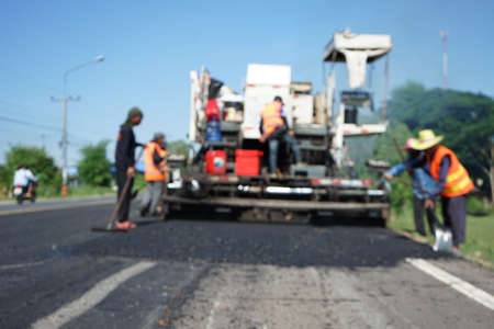 Picture blurred asphalt road construction By using heavy machinery
