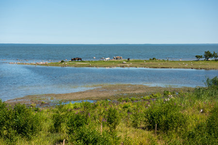 Uugu bluff or cliff on the Muhu Island in Estonia, located by the Baltic sea and near the island of Saaremaa. Picturesque area here and wild horses and cows graze.