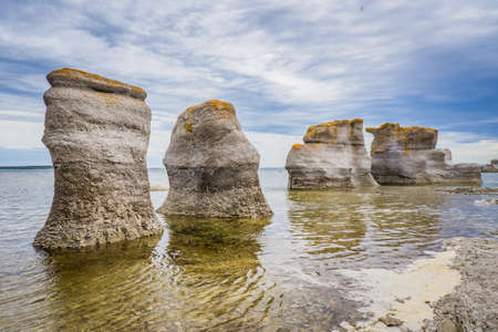 View on the famous monoliths of Quarry Island, in Mingan Archipelago National Park, in Cote Nord region of Quebec, Canada
