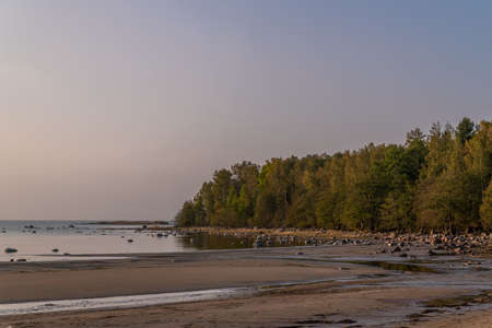Huge rocks on the Gulf of Finland beach. Saint Petersburg, Russia.