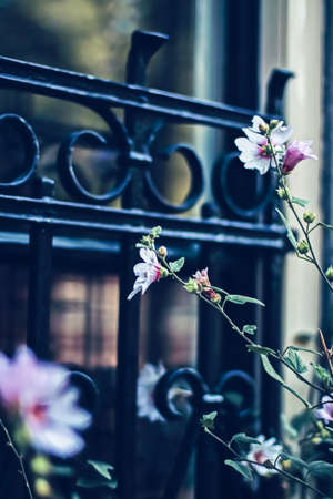 Blooming flowers in a European city garden