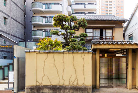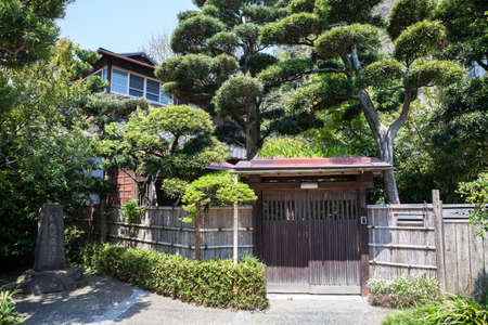 KAMAKURA, JAPAN-Circa APR, 2013: Beautiful wooden house with bamboo fence and garden is in outskirts of Kamakura city, Kanagawa prefecture