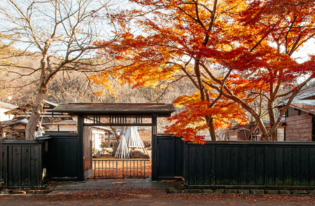Kakunodate, Japan - DECEMBER 3, 2018 : old Samurai town famous vintage Edo village with colourful autumn tree of Akita, Tohoku region