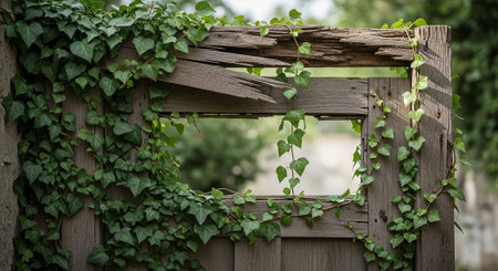 Rustic wooden door with ivy leaves
