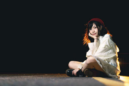 Night portrait of charming Asian girl at night