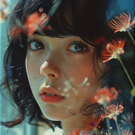 beautiful asian woman surrounded by flowers. Fashion concept. Generative ai