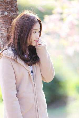 Asian Woman with cherry blossom nature background