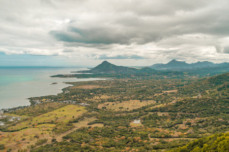 View from the viewpoint. Le Morne Brabant on background. Mauritius.
