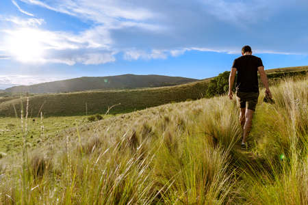 A man hiking in the Royal Natal National Park in Bonjaneni, South Africa