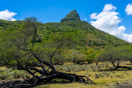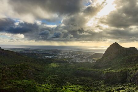 Beautiful mauntain landscape from Mauritius island on sunny day