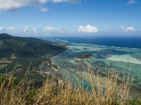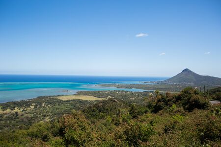 View on the lagoon from the Morne in Mauritius on a sunny day