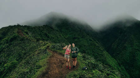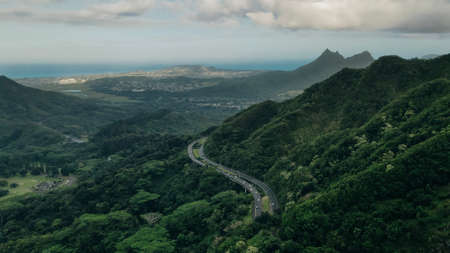 Mountain top views in Oahu. Moanalua Valley Trail in hawaii. High quality photo
