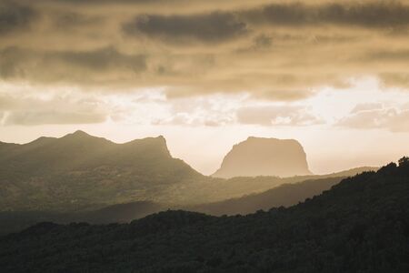 Amazing view of Le Morne Brabant at sunset. Mauritius island.