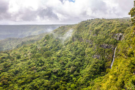 View from the observation deck of the Waterfall in the Chamarel nature Park in Mauritius.