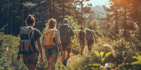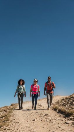 Group of Friends Embracing Nature s Beauty Hiking Adventure on a Scenic Mountain Trail