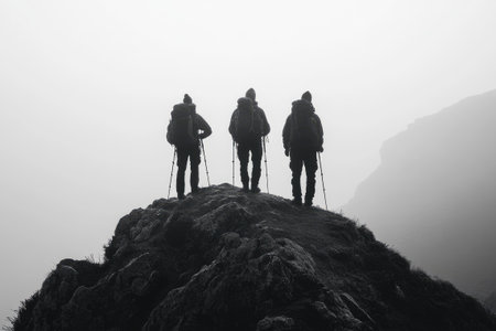 hikers on a top of a mountain. AI generated content
