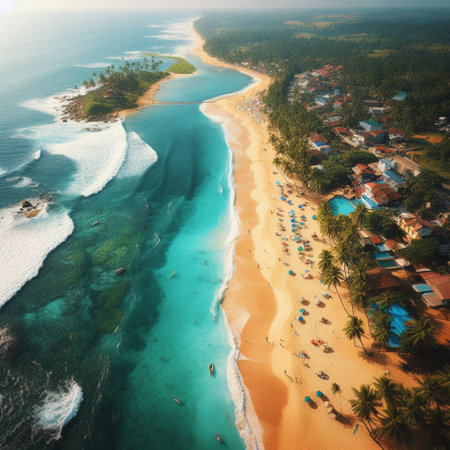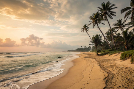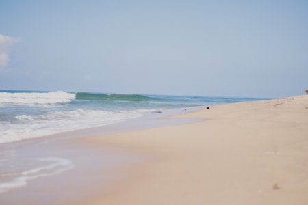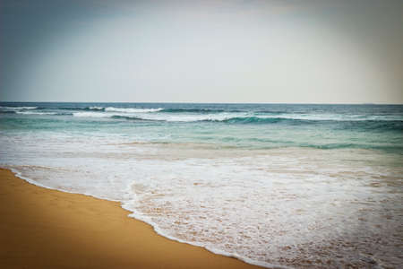 Sea sand beach resort landscape, ocean waves, Sri Lanka