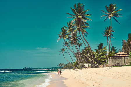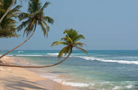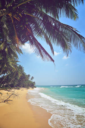 The wild beautiful beach of Sri Lanka with palms at West Coast