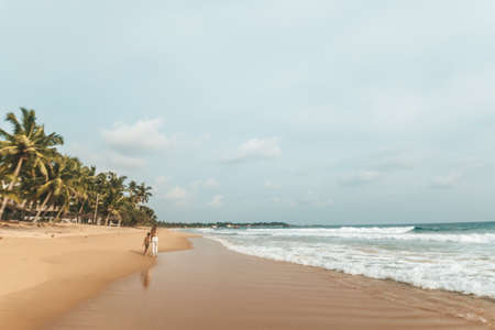 Beautiful view of the tropical beach of Sri Lanka on a sunny day