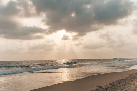 Beautiful tranquil evening sunset over the Indian Ocean on the sandy beach of Sri Lanka in Hikkaduwa
