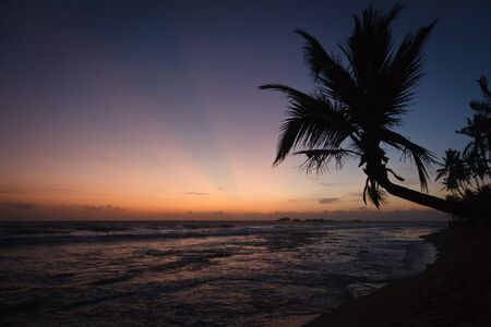 Palm and ocean on sunset. Hikkaduwa, Sri Lanka