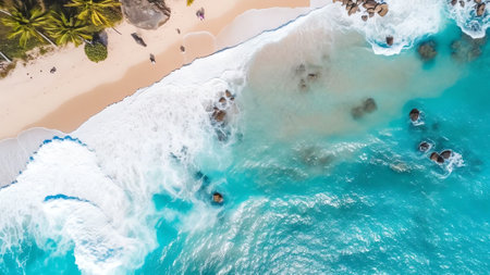 Generative AI : Aerial view of waves breaking on Grande Anse beach Seychelles