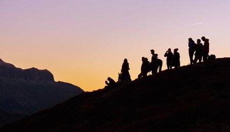 Silhouette of people on the shadow mountain