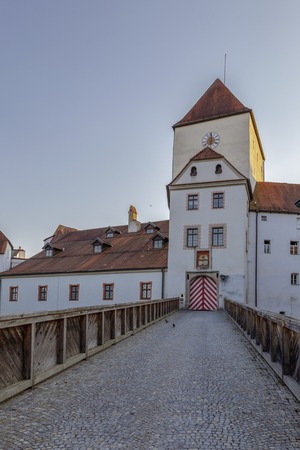 Castle in town Neuburg on River Danube in Bavaria Gaermany
