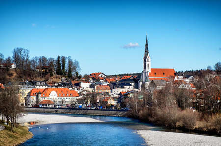 Landscape of Landsberg am Lech river bank, view in warm winter, at Bavaria Germany Europe