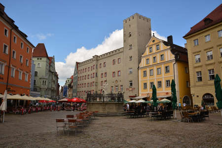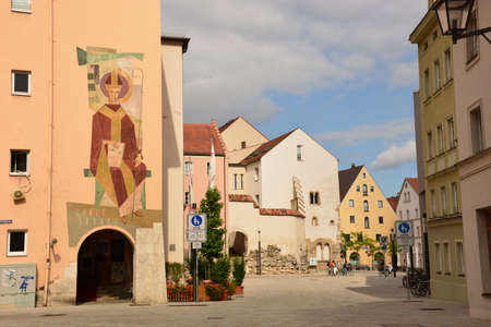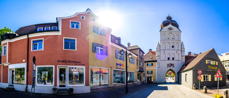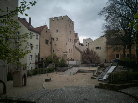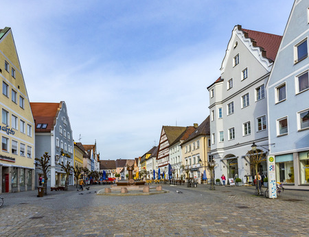 Aichach, Germany - May 22: historic buildings at the old town of Aichach on May 22, 2021