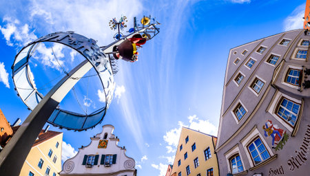 Landshut, Germany - July 24, 2023: Panoramic view of traditional colorful gothic houses in Old Town, Landshut, Bavaria, Germany.