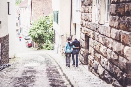 Senior Couple Walking Through The Streets Of Tuebingen,