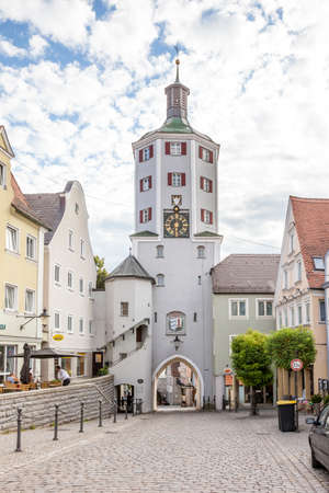 GUNZBURG, GERMANY - AUG 17, 2016: Historic Cow Tower and gate to the market place in Gunzburg, Bavaria, Germany