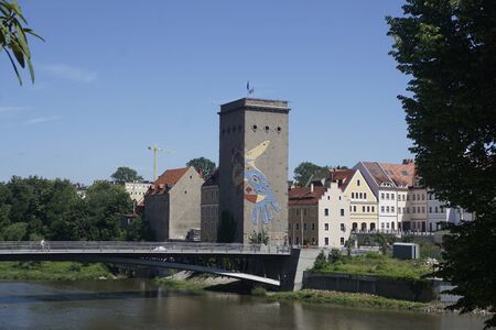 LANDSBERG AM LECH, GERMANY - JUNE 10: The river Lech at the historic city of Landsberg am Lech, Germany on June 10, 2017. Landsberg is situated on the so called Romantic Road.