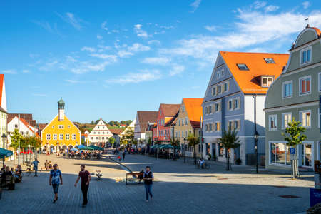 WEMDING, GERMANY - CIRCA JUNE 2019: View on historic Architecture in the centre of the historic medieval city circa June 2019 in Wemding, Germany.