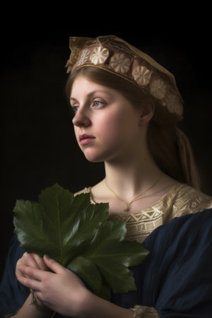 photo of strong ancient senior female warrior with roman armor stained, generative AI