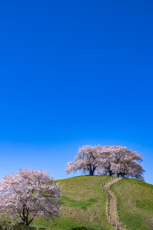 View of cherry blossoms from the east side of Sakitama ancient tomb Park.