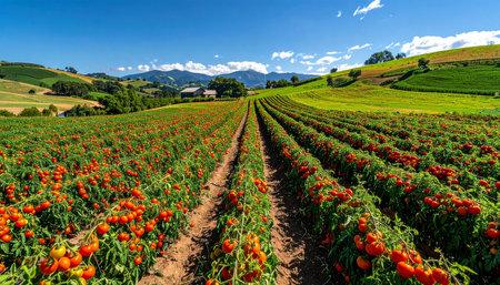 Fresh organic produce is meticulously prepared for delivery amidst a vibrant farm landscape, bathed in warm sunlight and surrounded by natures beauty.