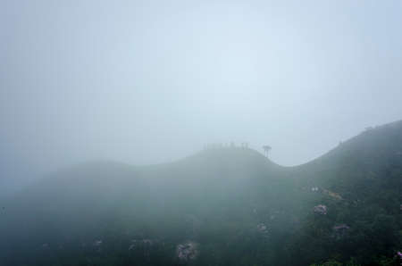 Mountain landscape covered in clouds on top of Wugong Mountain in Jiangxi, China