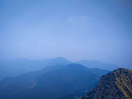 A amazing view of mountains in the fog